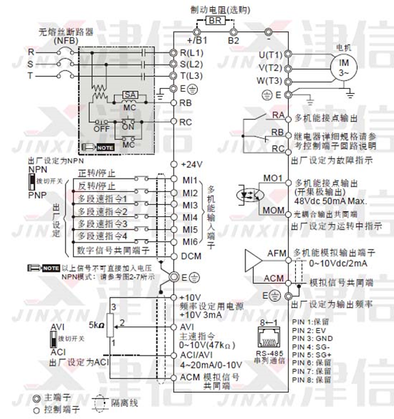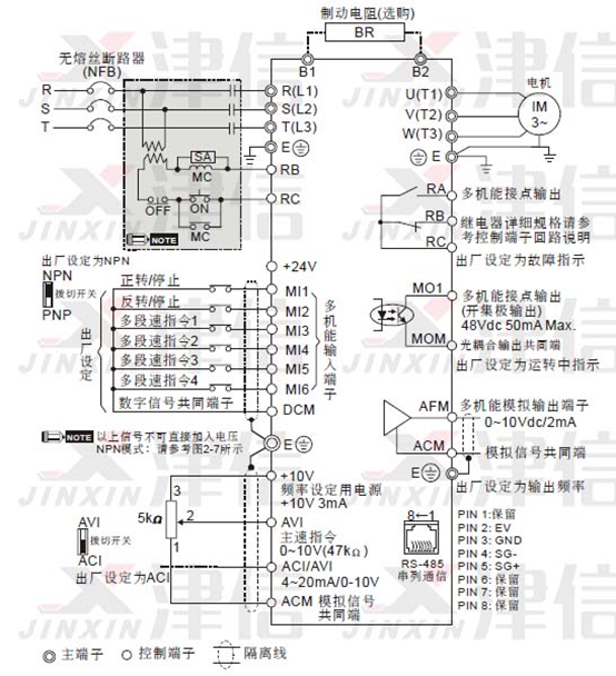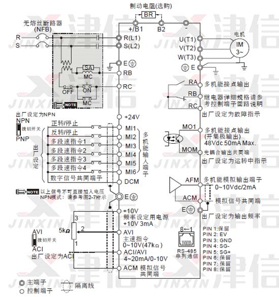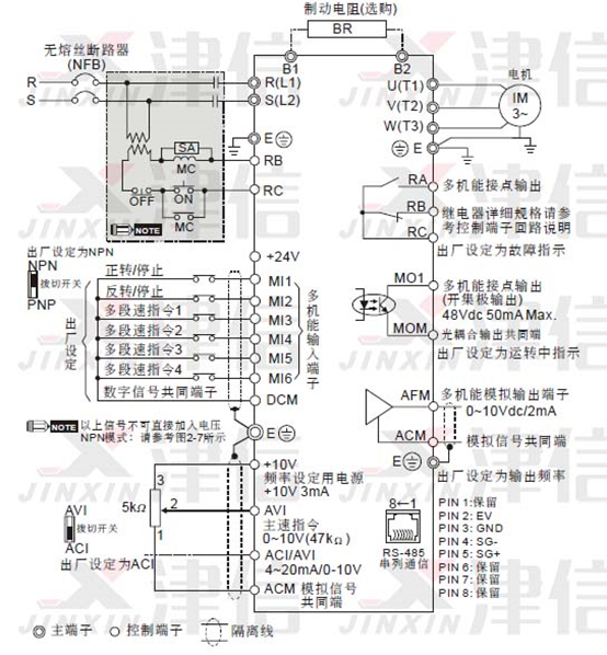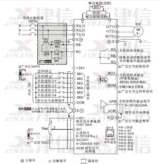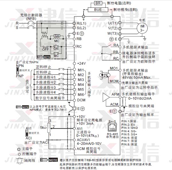 在臺達VFD-E變頻器安裝調(diào)試過程中,根據(jù)臺達VFD-E變頻器不同的型號,接線方式也略有不同,詳細如下: