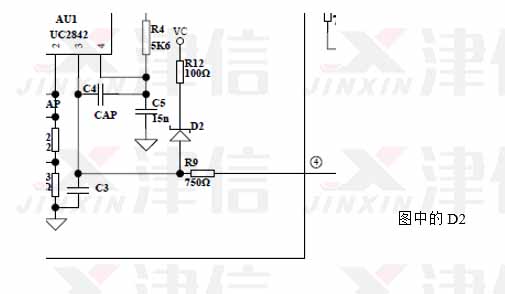 然后仔細察看開關(guān)電源的線路圖,發(fā)現(xiàn)在開關(guān)電源電流檢測端,UC3842的3腳,還接有另外一路保護,芯片電源腳經(jīng)過穩(wěn)壓管D2接到3腳,這部分線路應(yīng)該是開關(guān)電源自身的過壓保護。靜態(tài)測試穩(wěn)壓管特性良好,用穩(wěn)壓電源通電測量也正常,穩(wěn)壓值在21V左右(電源電壓17V),拆掉這個穩(wěn)壓管后給機器送電,測電流波形居然回到正常的0.3A。看來是這個穩(wěn)壓管特性不良引起的問題。重新安裝一個21V的穩(wěn)壓管,開機試運行一上午正常,沒有再出現(xiàn)以前的故障。最后送交客戶,經(jīng)幾天實際運行,工作正常,證明變頻器已完全修復(fù)。