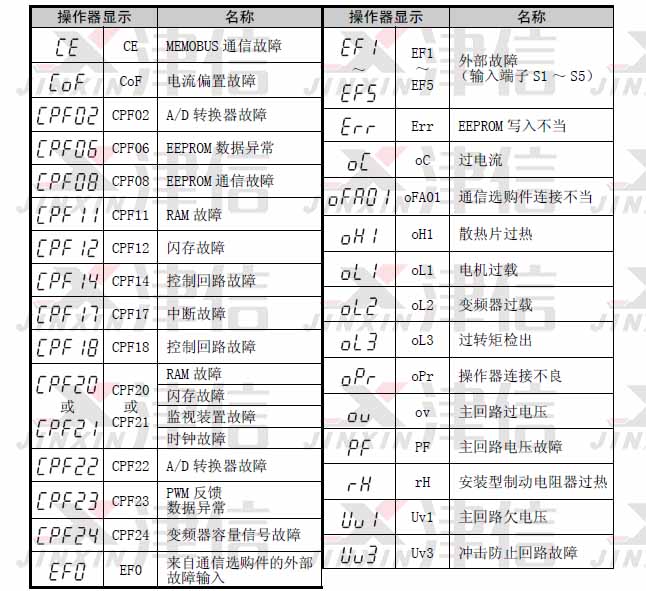 安川變頻器在出現(xiàn)故障代碼時,一共有三種表現(xiàn)形式: