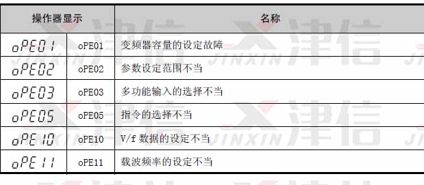 在參數(shù)輸入錯誤、參數(shù)間的組合不正確以及通信選購件的連接不當(dāng)時出現(xiàn)的故障顯示。