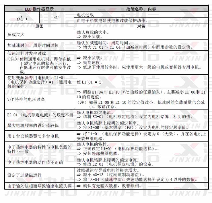 安川變頻器OL故障有三個報警代碼,分別是OL1,OL2,OL3。